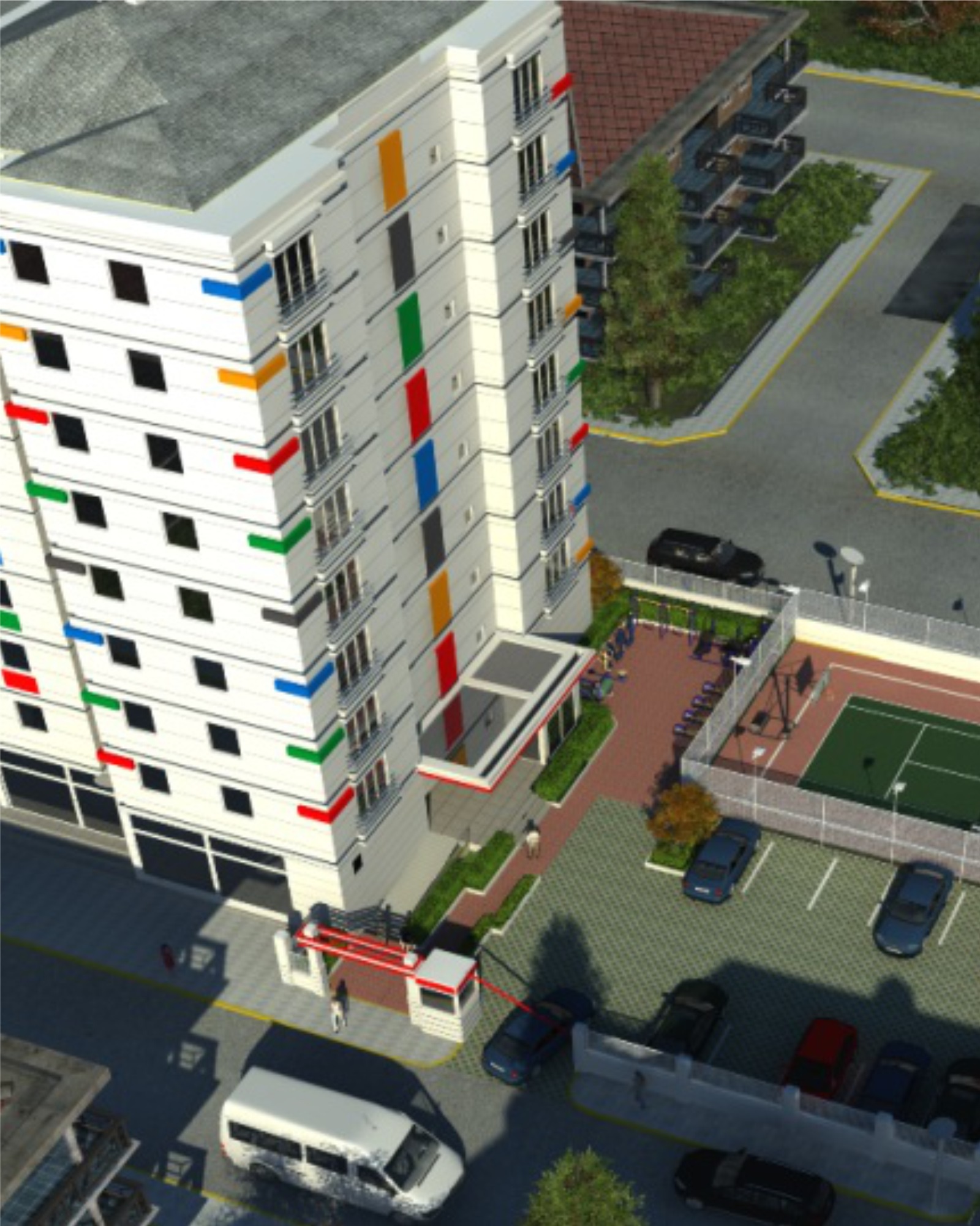 İçerik: 32 Daire, 1 Dükkan, Fitness Salonu, Basketbol Sahası, Tenis Kortu, Özel Otopark ve Güvenlik Hizmetleri